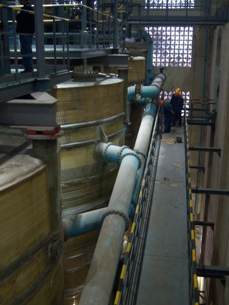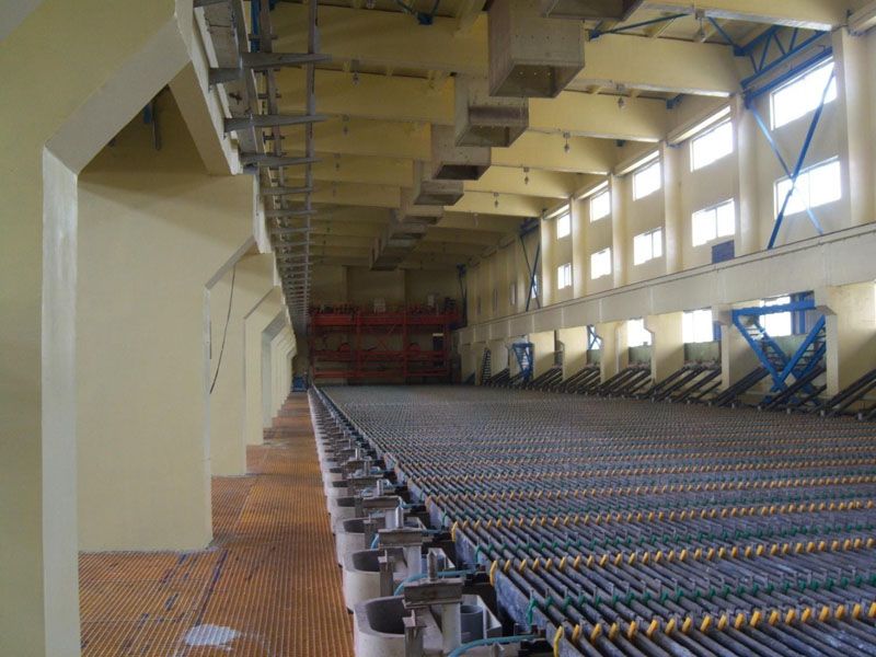 Ø 云南驰宏锌锗股份有限公司会泽电锌及渣综合使用工程,,,,,,,锌冶炼厂电锌产品总规模抵达15万t/a,,,,,,,接纳了大电解槽、3.2m2阴极板、大型全自动吊车等国际先进装置,,,,,,,是海内规模最大的锌电解车间。。。。。。。项目各系统之间产出渣资源化循环使用,,,,,,,充分验展了铅锌冶炼联合建厂优势,,,,,,,为云南驰宏锌锗股份有限公司打造了又一绿色环保型铅锌冶炼新企业。。。。。。。